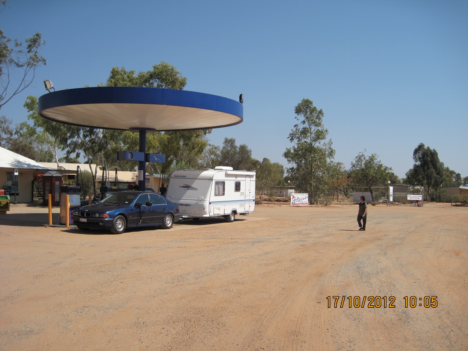 From 14 to 19 October 2012, we were driving from Roxburgh Park's home to Darwin's Lee Point Resort Village, taking turns driving between myself and our youngest son, Akustiadi.... our main purpose was to drive back Akustiadi's car and his belongings left in Darwin to our home in Melbourne.... our first overnight stay was at Highway1 Caravan Park in Bolivar at $38 per stay, then at Glendambo Caravan Park for $26 per stay without pipe water, then at Erldunda Caravan Park for $43 per stay, then at Tennant Creek Outback Caravan Park for $45 per stay, then at Katherine Resort for $50.75 per stay, and finally at Darwin's Lee Point Village Resort for 17 nights at $630 or $37.06 per night..... the journey was good except for heat from freezing in Melbourne, extreme heat (mostly 44 degree C) along the desert highway, and hot near Darwin, with the car pulling the caravan having power problems due to petrol overheating.... after adding petrol system cleaner, the driving became smooth..... it took us 6 days covering about 4,000 km in averaging 100 kph in 12 hours per day....